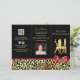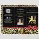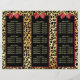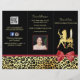 A glamorous hair salon trifold price list flyer with a woman wearing a gold crown. The background is decorated with a trendy black and gold leopard print and a girly red bow. Flat printed Image, NOT metallic.