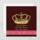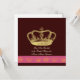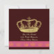 A beautiful wedding invitation in square format. Cute illustration of a golden crown with several smaller crowns across the bottom in a swath of bright pink. Add your own text in any font or color for added drama. Play with background colors too!