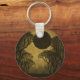 Grungy and cool Dark Forest Eclipse Keychain in gold featuring a quiet forest scene with a lunar eclipse. This digital art key fob will look great and keep your keys handy. Customize with your own text.