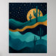 Immerse yourself in a dreamy desert under a star-studded sky with this stunning abstract illustration. Featuring layered waves of teal and gold, silhouetted cacti, and a glowing moon, this cosmic desert scene blends elegance with tranquility.
