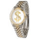 Golden dollar sign on white background men's watch by ab Martin Digital.