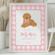 Welcome your guests in the sweetest way with this pink gingham golden doodle first birthday poster! Featuring a darling golden doodle puppy with a pink gingham bow and a classic checkered background, this personalized birthday poster adds a heartwarming touch to your little one’s special day.