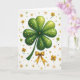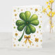 This greeting card features a large four-leaf clover centered on a bright white background, its plump emerald leaves dotted with tiny gold spots that glint like confetti 💚. The clover has a glossy, balloon-like look, giving it a gentle 3D feel as if it’s floating forward. Just below it sits a shiny gold bow, tied neatly like a little gift waiting to be opened, adding a sweet, friendly touch ☘️. Around the main clover, smaller four-leaf clovers in green and gold drift across the space, as if they’re circling in a quiet celebration. Scattered gold stars and soft, blurred light circles fill the background, creating a cozy sparkle that feels like a shared wink between close friends. There is no text on the front, leaving the design open and airy with the focus on the clover and bow. The smaller clovers appear at different sizes and distances, with a few tucked near the edges while the brightest starlets cluster lightly behind the center.