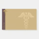 Double snake caduceus. Gold color icon. Custom background color. Custom text.