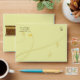 Mid-sized envelope. 6 ½” W x 4 3/4” H. Flourish of golden vines with dragonfly on a linen background. Part of a stationary, invitation, RSVP and postage collection, please see my store. Elegant square flap and gum seal. Fits folded 5.5 x 8.5 stationary, 6 x 4 inch smaller invitations and cards.