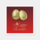 Glamorous illustration with 2 golden easter eggs on a red background.
