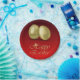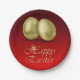 Glamourous illustration with 2 golden easter eggs on a red background.