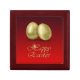 Glamourous illustration with 2 golden easter eggs on a red background.