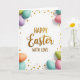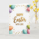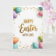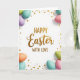 This card features a shimmering gold message centered on a bright white background, giving the page an airy, open look. The wording reads “HAPPY Easter WITH LOVE,” with “HAPPY” and “WITH LOVE” in simple uppercase lettering and “Easter” in a flowing, cursive-style line, all in gold. The gold finish looks lightly textured, like a brushed metallic sheen that catches the light when you tilt it. Around the edges, smooth egg-shaped decorations sit like a gentle frame, their soft pastel colors suggesting a sweet, friendly exchange 🐰. You’ll see shades of lavender, teal, pink, green, and peach, each with a matte look and a faint shadow that adds depth. Scattered across the white space are small, irregular gold dots that resemble confetti, adding a flirty sparkle without crowding the message 🌷. The eggs cluster near the corners and sides, leaving wide white space around the centered gold text and the scattered gold specks.