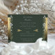 This wedding reception invitation is a true masterpiece of elegance and style, combining the natural beauty of Art Nouveau with a modern twist. The invitation features a luxurious deep forest green background complemented by a gold foil accent strip on the side, bringing a touch of opulence to the design. Stylized floral illustrations in cream and sage adorn the borders, embodying the organic and flowing lines characteristic of the Art Nouveau period. The details of the reception are delicately inscribed in a sophisticated script, inviting guests to continue the celebration with dinner, dancing, and merriment.
