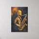 A moving work of art that captures the soul of a master saxophonist. In a stunning contrast of black and gold, the experience and passion of a veteran musician come to life. Dynamic brushstrokes and rich texture create an atmosphere of sophistication and nostalgia. A piece of impact that celebrates the timelessness of music and talent.