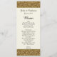 Long and skinny cream colored wedding table menu done, with graphics of a ornate gold on gold swirly pattern edge, on the top and bottom. Personalize the black text for your special day. Lovely addition to our Golden Elegance wedding set.
