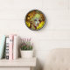 I received this as a birthday gift from my husband to replace a clock that had broken. It was perfect, pictures of my sweet family to see at every hour of the day. The size of the pictures looks nice for the size of the clock and I love looking at it! The only downside is there is no cover for the battery on the back, which makes me nervous having little kids running around the house, but an easy fix with some tape. The printing turned out clear, considering they were all cell phone pictures. Some of them look slightly grainy upon getting close up. But so nice overall!