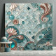 An exhilarating crystal-clear underwater scene, ceramic tile design with embellishment of gold, mosaic and aqua blue art. The illustration has aqua blue in dreamy, artistic interpretation of soft hues of cyan blue and gold. If you love soft blue hues and rich aquamarine tones, then this breathtaking design will bring ocean, bubbles and corals inside your home. Perfect for decorative tiles, wall art and more. A bespoke luxury mosaic tile with a subtle deco influence, great for alcoves and wall accent.