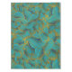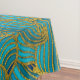 Golden Embossed Swirl Wave Pattern on Blue Tablecloth