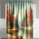 Golden Fall Forest Reflections shower curtain featuring vibrant autumn trees and a tranquil lake scene, perfect for cozy, nature-inspired bathrooms.