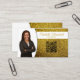 Golden Faux Glitter with Custom Photo & QR Code Business Card