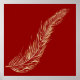 A golden feather on a maroon background. This design looks really effective on these Poster