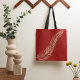 A golden feather on a maroon background. This design looks really effective on this Tote Bag