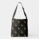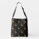 black tile patterned gold foil flamingo all over print cross body tote bag