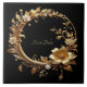 Beautiful Golden Floral Ornate Frame Ceramic Tile