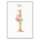 Golden number with soft pastel floral embelishment table number card. Personalize text font style, size, and color.