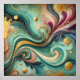 A vibrant abstract artwork featuring swirling teal, turquoise, and magenta accents with golden highlights. Perfect for modern living rooms, bedrooms, or office spaces. This print adds elegance, energy, and sophistication to any interior décor. Ideal for wall décor in living rooms, bedrooms, offices, or creative spaces.