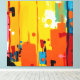 An expressive abstract artwork dominated by shades of orange and yellow, featuring dynamic brushstrokes and dripping paint. The fluid movement and bold color palette create a sense of energy and artistic spontaneity
