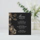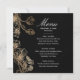 Gorgeous gold colored floral outlines adorn the side and back of this wedding menu. A minimalist layout is on the front. Customize the background colors to coordinate with your wedding theme.