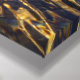 Gold, black, and blue water ripples chaotically fill the abstract photo of fountain water illuminated by late afternoon sun.