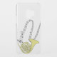This phone case features a golden color French horn drawing with a swirled music staff in the background.