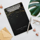 Chic clipboard features two lines of custom text in classic white lettering on a rich black background crisscrossed with strands of faux gold foil string lights. Design repeats on reverse side. Please note that this clipboard is a mini size; full size version also available in our Golden Garland collection.
