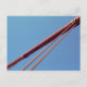 Walking across the Golden Gate Bridge one sunny day in San Francisco, California, I took a photograph of one of its suspension cables set against a clear blue sky. The orange-red cable angles diagonally across the frame from the lower left to the upper right. Two pairs of suspender ropes stretch down to the left side of the photo's base. The main cable is massive, its diameter 36 3/8 inches while that of each suspender cable is 2 11/16 inches.