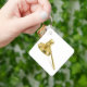 The key chain is made of metal and really sturdy. The flower design is really cheerful. The logo and colors are clear and crisp!