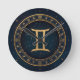 Golden Gemini Zodiac Circle With Starry Night Round Clock