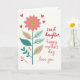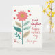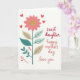 This card features a tall floral stem rising on a bright white background, topped with a large stylized flower whose soft pink petals curve inward as if cradling a warm moment ❤️. At the center of the bloom sits a golden, glittery-looking circle that catches the eye like a small glow. The stem is a rich teal, and it holds alternating leaves in deep teal and a muted beige, each leaf marked with fine vein lines for gentle detail. Scattered around the flower are small red hearts, placed like little signals of closeness and affection between loved ones 🌼. On the right side, three short lines of text are arranged in a neat vertical stack, giving the artwork breathing room. The words read “sweet daughter,” “happy mother’s day,” and “love you,” written in a loose handwritten style, shifting through soft red and rosy pink tones. The hearts appear in bright red near the stem and around the bloom, with the tallest one floating just left of the text.