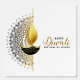 A luminous diya radiates warmth and hope, framed by intricate mandala patterns in black and gold. This design honors Diwali’s sacred promise: light triumphs, shadows recede, and joy finds its way home.