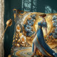 Step into a world of timeless elegance with this stunning Art Nouveau-inspired design, featuring a graceful goddess draped in flowing sapphire and gold fabric. Surrounded by intricate golden florals and soft blue blossoms, she stands in a radiant halo that evokes celestial symbolism and classical beauty. The balanced symmetry, ornate floral motifs, and luxurious palette of gold, blue, and ivory blend seamlessly with the flowing curves and decorative geometry typical of the Art Nouveau era. Ideal for lovers of mythology, fantasy aesthetics, and vintage elegance, this piece brings a regal and ethereal presence to any space. Whether used as a centerpiece or integrated into a larger decorative collection, it radiates a refined, feminine energy that feels both nostalgic and timeless. AI generated artwork.