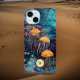 This magical nautical design features gold and orange jellyfish gracefully floating in a magical teal green and blue sea. The jellyfish seem to be illuminated against the the deep ocean watercolors, as other sea creature scuttle about. One monogram initial appears in a dark blue on a circle of golden orange. This phone case is great for an ocean, beach or marine life enthusiast. Make sure to type your initial in the Personalized section.