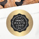 Golden gradient wavy border black business logo classic round sticker