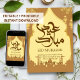A majestic and festive Eid card in rich gold tones. Featuring a grand mosque skyline, glowing lanterns, and intricate golden mandala ornaments, this design is perfect for a joyful and grand celebration.