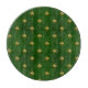 This Irish inspired pattern features metallic gold four leaf clovers on a dark green background.