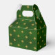 This Irish inspired pattern features metallic gold four leaf clovers on a dark green background.