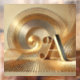 This abstract artwork shows curved, golden rainbow shapes that extend harmoniously from a central point. At the bottom there is a concise, stylized golden "A" that rounds off the composition. The soft neutral background color enhances the luxurious gloss of the golden elements, while the soft lighting gives the image a radiant elegance. The modern decor symbolizes refinement and timeless beauty.
