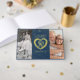 Golden heart 50th wedding anniversary photos blue foil guest book