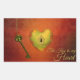 Lovely and romantic illustration featuring a golden heart and key on a structured red background. Gold Script love quote: "The key to my heart".