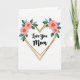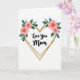Designed with a white background, the card centers on a large heart shape formed by two close, slightly weathered gold lines that catch the light. Nestled inside the heart is a short message in flowing black lettering, placed centrally so it feels like it’s being held close ❤️. Along the top curves of the heart, small flower clusters lean toward each other like close friends sharing a quiet moment. The blossoms are soft salmon-pink with bright yellow‑orange starburst centers, adding a gentle glow near the top. Deep emerald and teal leaves weave between the petals, creating a cozy contrast against the gold outline. The flowers sit mostly at the upper left and upper right, leaving open space below so the heart and words feel calm and uncluttered 🌼. The gold heart outline remains the main frame, with the floral accents resting across its upper edge in two balanced clusters.