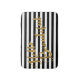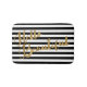 The greeting "Hello Beautiful" rendered in faux gold makes an impression against contrasting black and white stripes on this bathmat. A pretty way to boost confidence. Available with matching products.