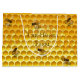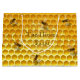 Lively bees fly over a golden honeycomb as clear amber honey drips down over the name of your farm or apiculture business. Whether you are gifting or selling bee products, custom packaging will add charm and appeal of the item.