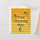 This card feels like a view inside a bee hive with a golden honeycomb and three flying bees. The front of the card can display your custom greeting or in either large or small text with honey flowing over the words. The back has two pretty bees to accentuate your message.